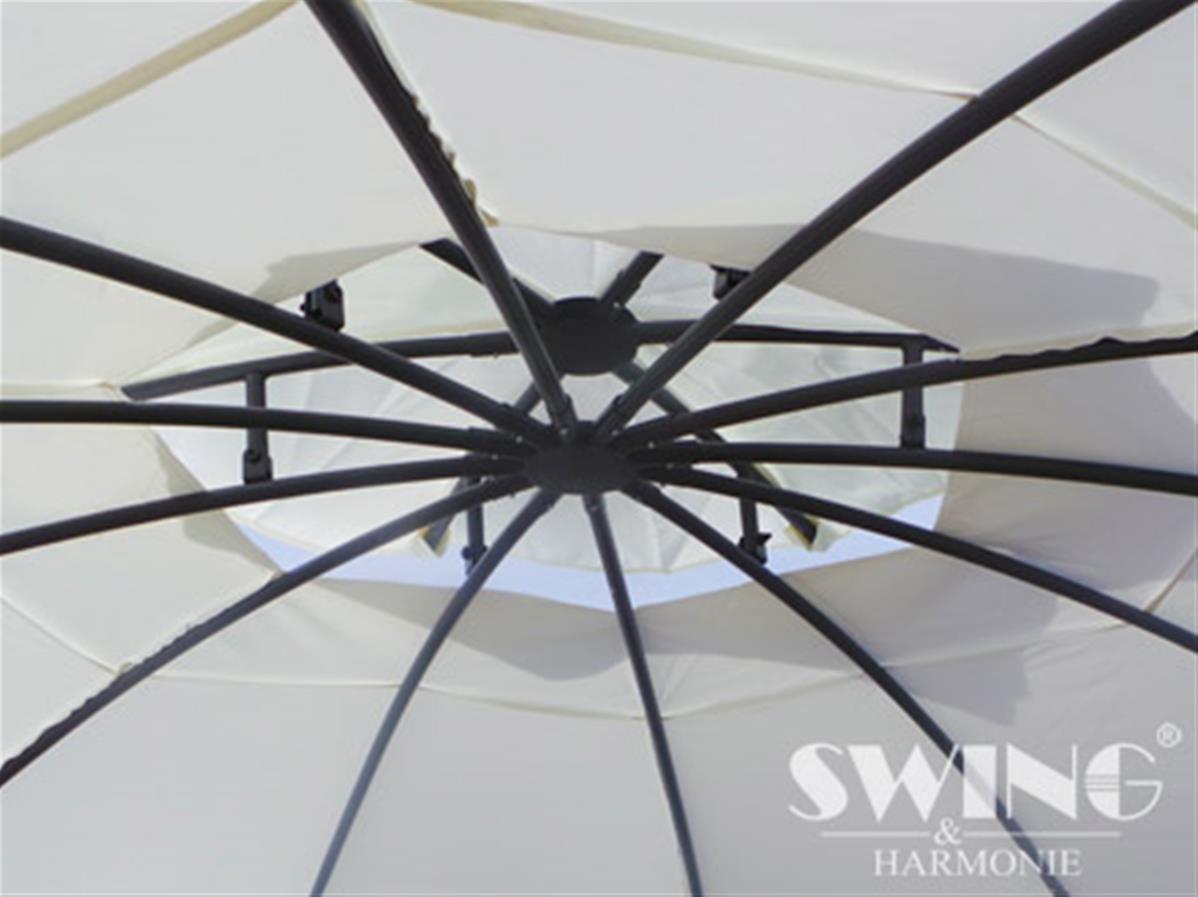 L'armature acier peinte et décorée avec des ornementsdonnent à cette tonnelle de jardin son design exclusif.